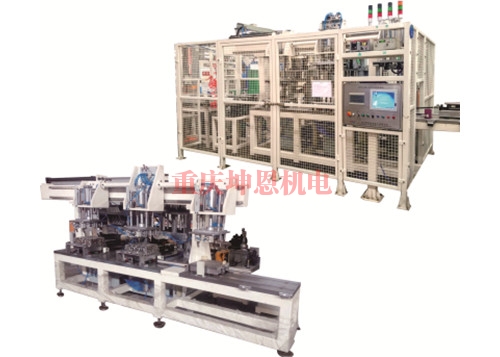 該設備為全自動密封性檢測專用設備。采用在線旁置式結構,采用架機械手將工件抓取到底模板上一麵兩銷定位;然後工件自動拉進到檢測工位進行封堵及檢測,最終通過檢漏儀判定是否合格。不合格工件通過回轉台送至廢料滾道。